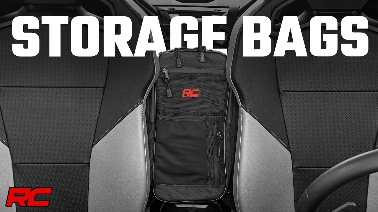Durable Construction. Rough Country's storage bags are constructed of high-density water, dust, and scratch-resistant 1680D Oxford nylon fabric. This convenient storage option opens on both driver and passenger sides offering ease of access to your stored goods. Rough Country's Storage Bag offers water and dust-resistant double SBS zippers to ensure that your cargo stays sealed and well protected. Don't take to the trails ill-prepared. Rough Country's storage bags are the must-have solution for carrying your cargo!